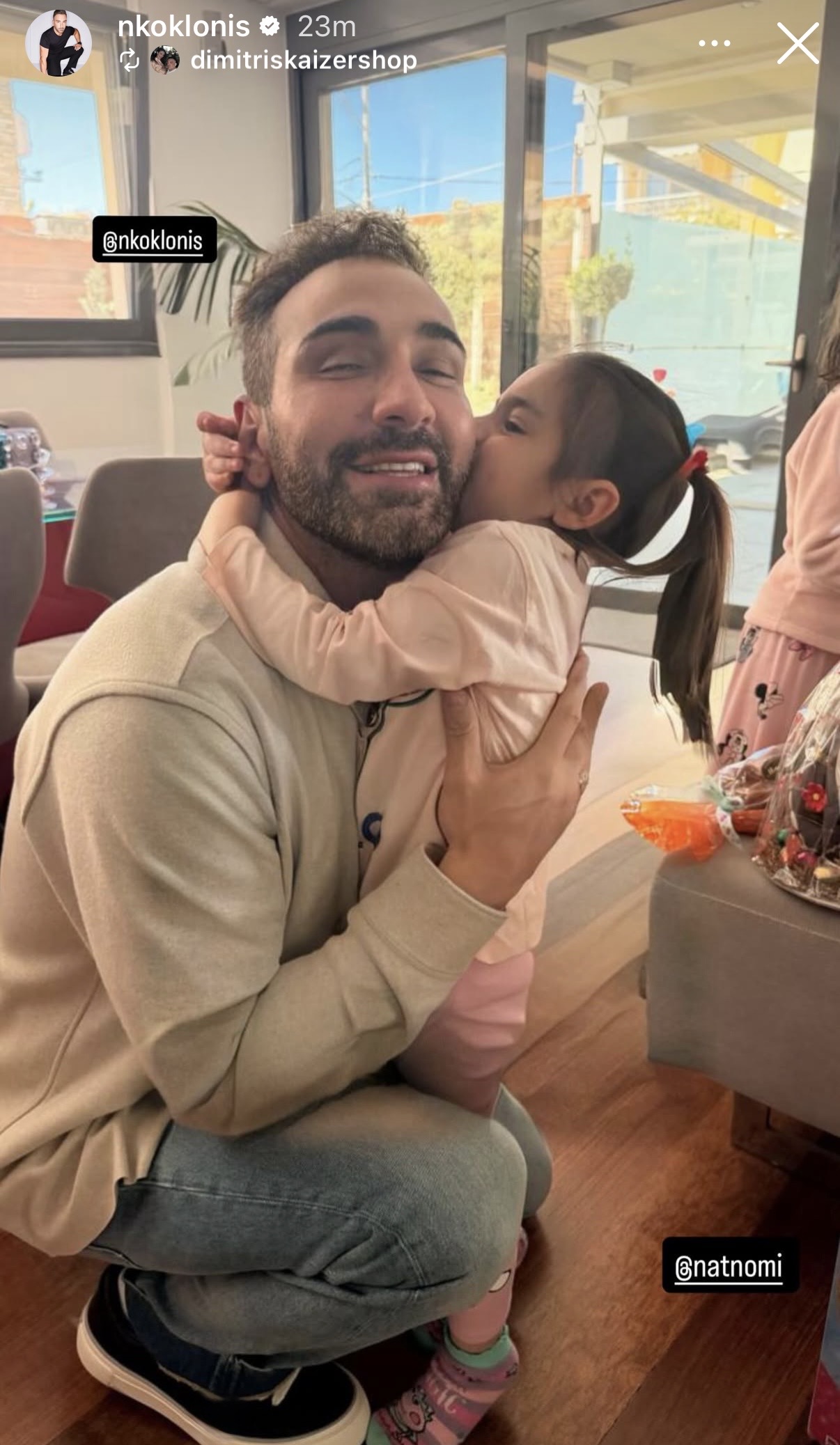 Αυτό το στιγμιότυπο μας θυμίζει πως οι πιο όμορφες εμπειρίες δεν βρίσκονται πάντα κάτω από τα φώτα της δημοσιότητας. Είναι οι μικρές, προσωπικές στιγμές με τα αγαπημένα μας πρόσωπα που γεμίζουν τη ζωή με χαρά και ζεστασιά. Ο Νίκος Κοκλώνης δείχνει με τον πιο τρυφερό τρόπο πως η οικογένεια και οι κοντινοί άνθρωποι είναι οι πραγματικοί πρωταγωνιστές της καθημερινότητας.