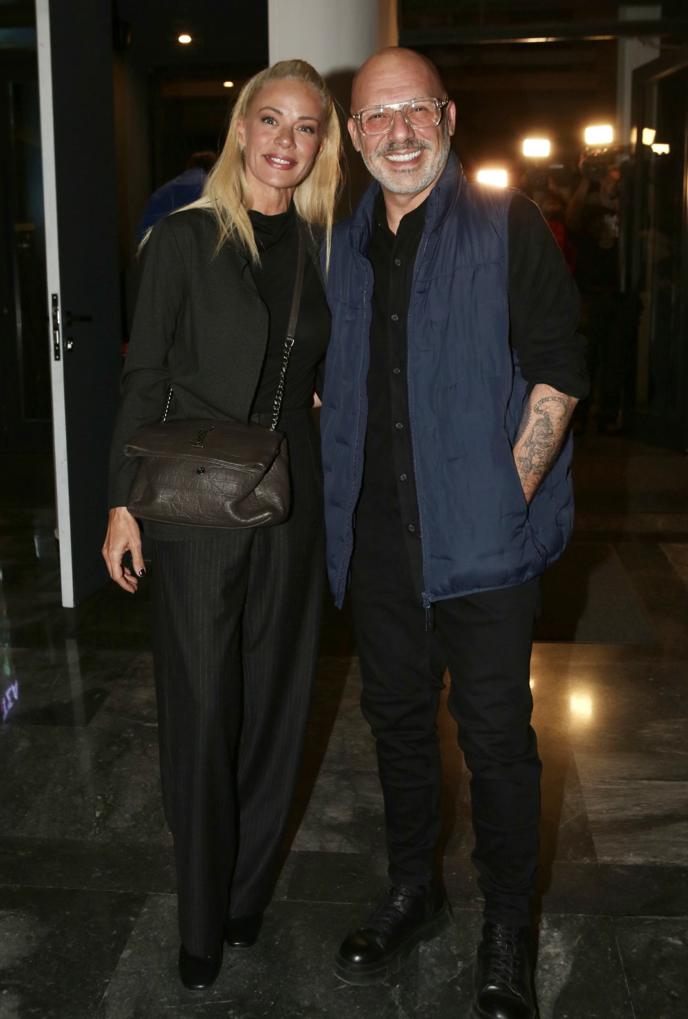 Ο Νίκος Μουτσινάς και η Ζέτα Μακρυπούλια ντυμένοι casual και σε σκούρα φθινοπωρινά χρώματα έδωσαν το «παρών» στη βραδιά.