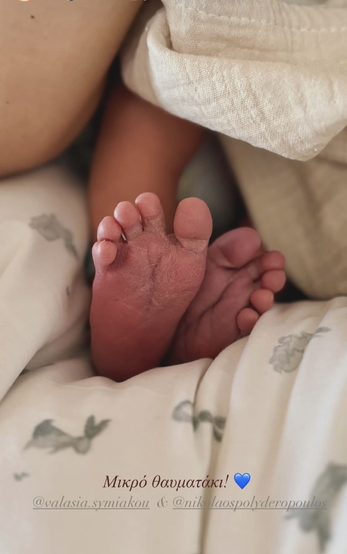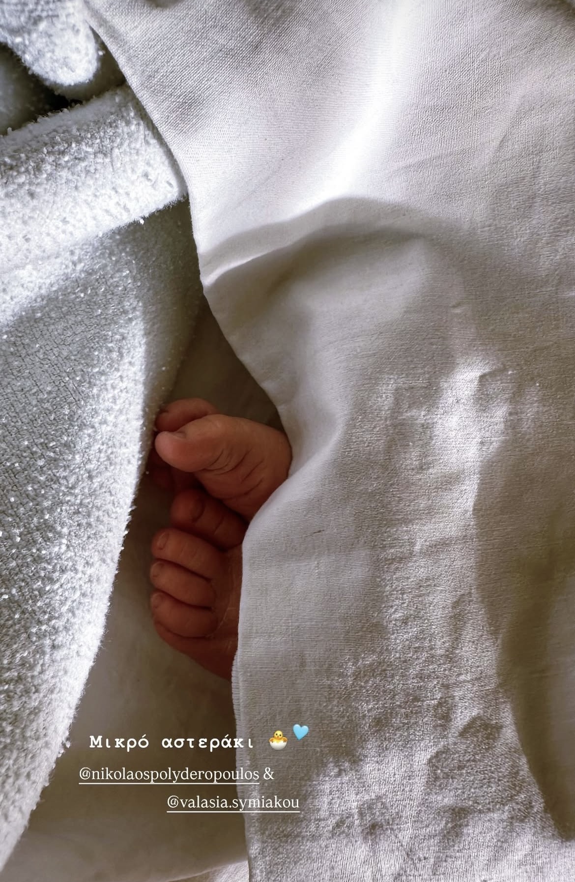 Με μεγάλη χαρά και συγκίνηση, ο ηθοποιός Νίκος Πολυδερόπουλος και η σύντροφός του, Βαλασία Συμιακού, υποδέχτηκαν τον πρώτο τους γιο στις 29 Ιανουαρίου. Το ζευγάρι μοιράστηκε το ευχάριστο νέο με φίλους και θαυμαστές, φέρνοντας ευγνωμοσύνη και χαρά στη ζωή τους.