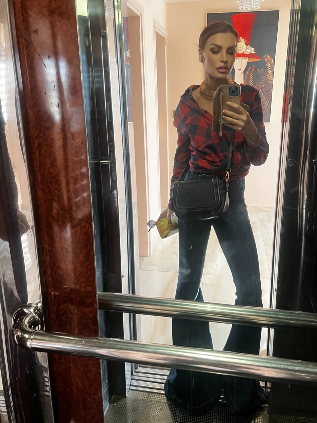 Στην πρώτη εικόνα, τη βλέπουμε σε ένα χαλαρό, καθημερινό σύνολο που αποπνέει άνεση και ανεπιτήδευτο στιλ. Ένα απλό τζιν παντελόνι συνδυάζεται με καρό πουκάμισο, δημιουργώντας ένα look που είναι ταυτόχρονα διαχρονικό και απόλυτα σύγχρονο. Είναι η επιτομή του casual chic — χωρίς υπερβολές, αλλά με σωστή ισορροπία.