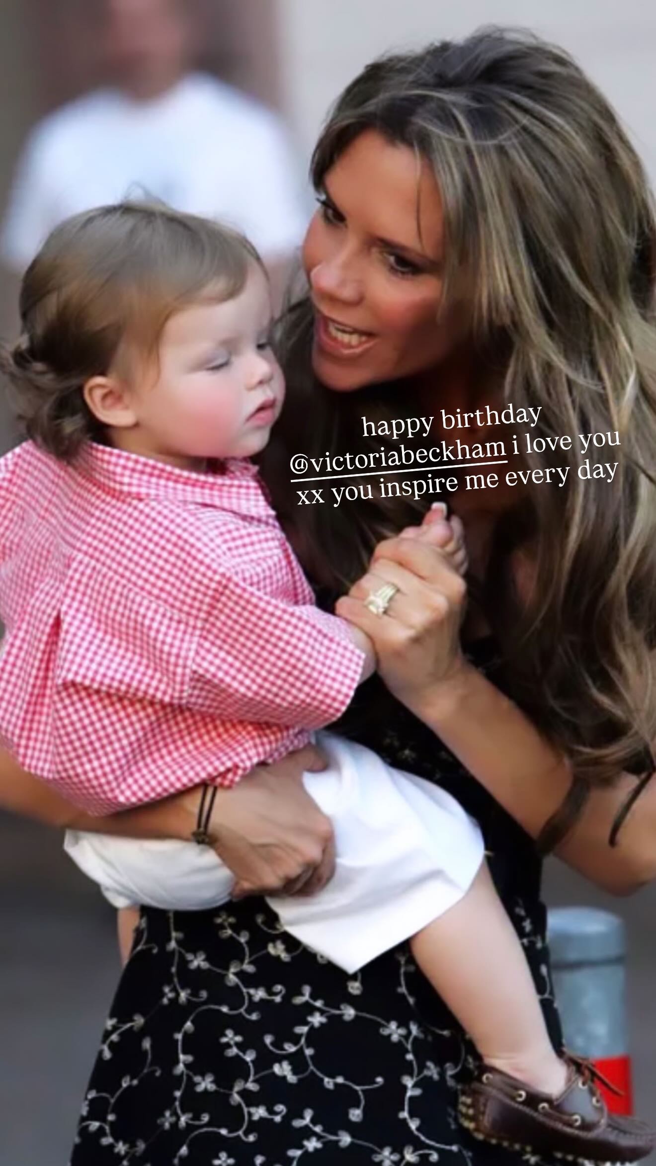 Ένα ιδιαίτερο δώρο όμως, φρόντισε να κάνει ο γιος της, Κρουζ Μπέκαμ, ο οποίος δημοσιοποίησε μία μία φωτογραφία από το παρελθόν, στην οποία εκείνος ως παιδί βρισκόταν στην αγκαλιά της μητέρας του, γράφοντας το εξής ιδιαίτερο μήνυμα: «Χρόνια Πολλά. Σ’ αγαπώ. Με εμπνέεις κάθε μέρα».