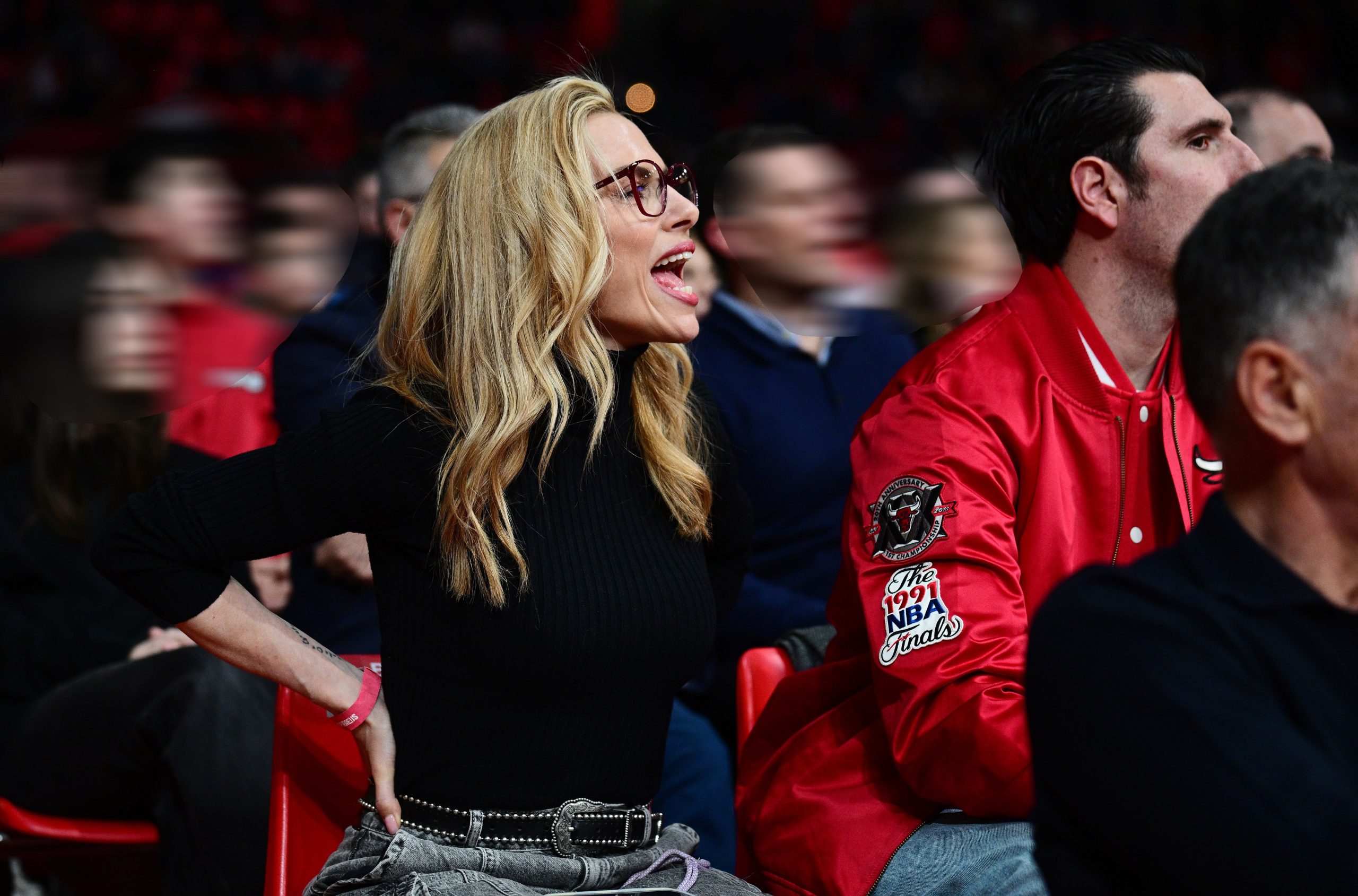 Η ηθοποιός φορούσε ένα jean παντελόνι και ένα μαύρο ζιβάγκο, ενώ από την άλλη ο Γιώργος Γεροντιδάκης, ένα blue jean και ένα κόκκινο jacket.