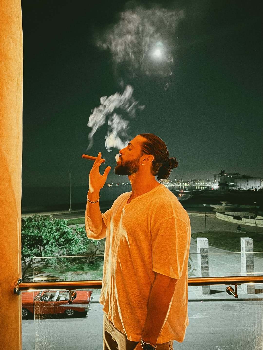 Δεν έλειψε βέβαια και η χαρακτηριστική εικόνα από κτίριο με τη γνωστή τοιχογραφία του Τσε Γκεβάρα, αλλά και βραδινή λήψη όπου ο Κωνσταντίνος Βασάλος ποζάρει με πούρο, σε φόντο που θυμίζει την κλασική κινηματογραφική Κούβα.