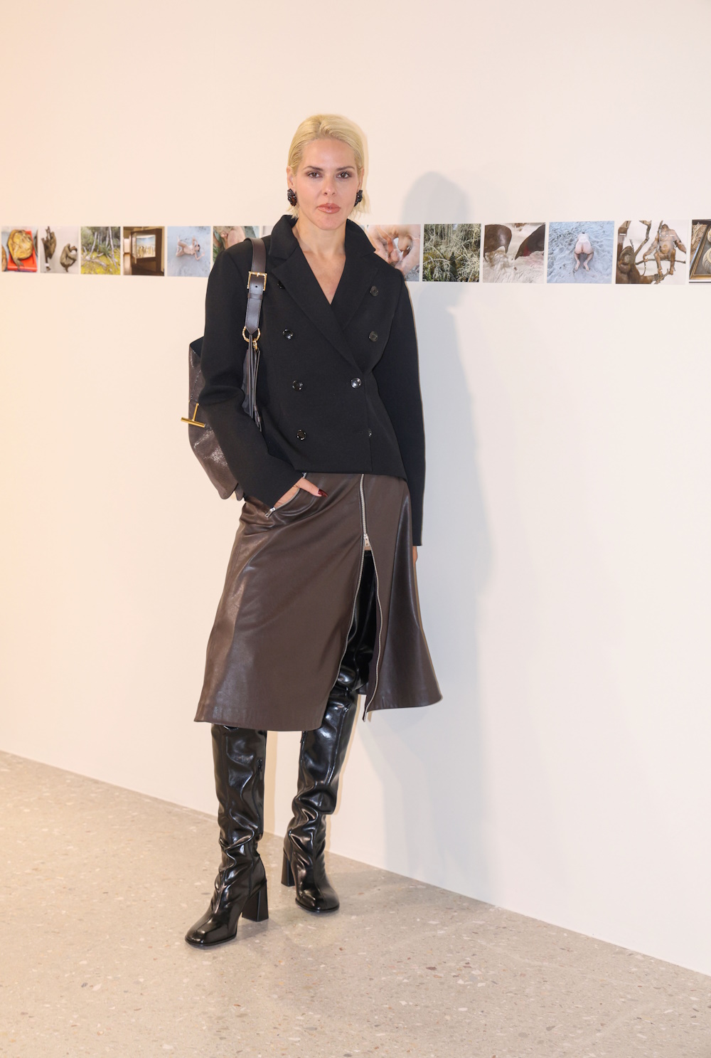 Η Ζενεβιέβ Μαχαίρι εντυπωσίασε με ένα πιο edgy σύνολο: over-the-knee boots, oversized πουκάμισο και bomber jacket συνθέτουν ένα look που παίζει με τις αναλογίες και δίνει μια αίσθηση effortless coolness, ιδανικό για καθημερινές εμφανίσεις με χαρακτήρα.
