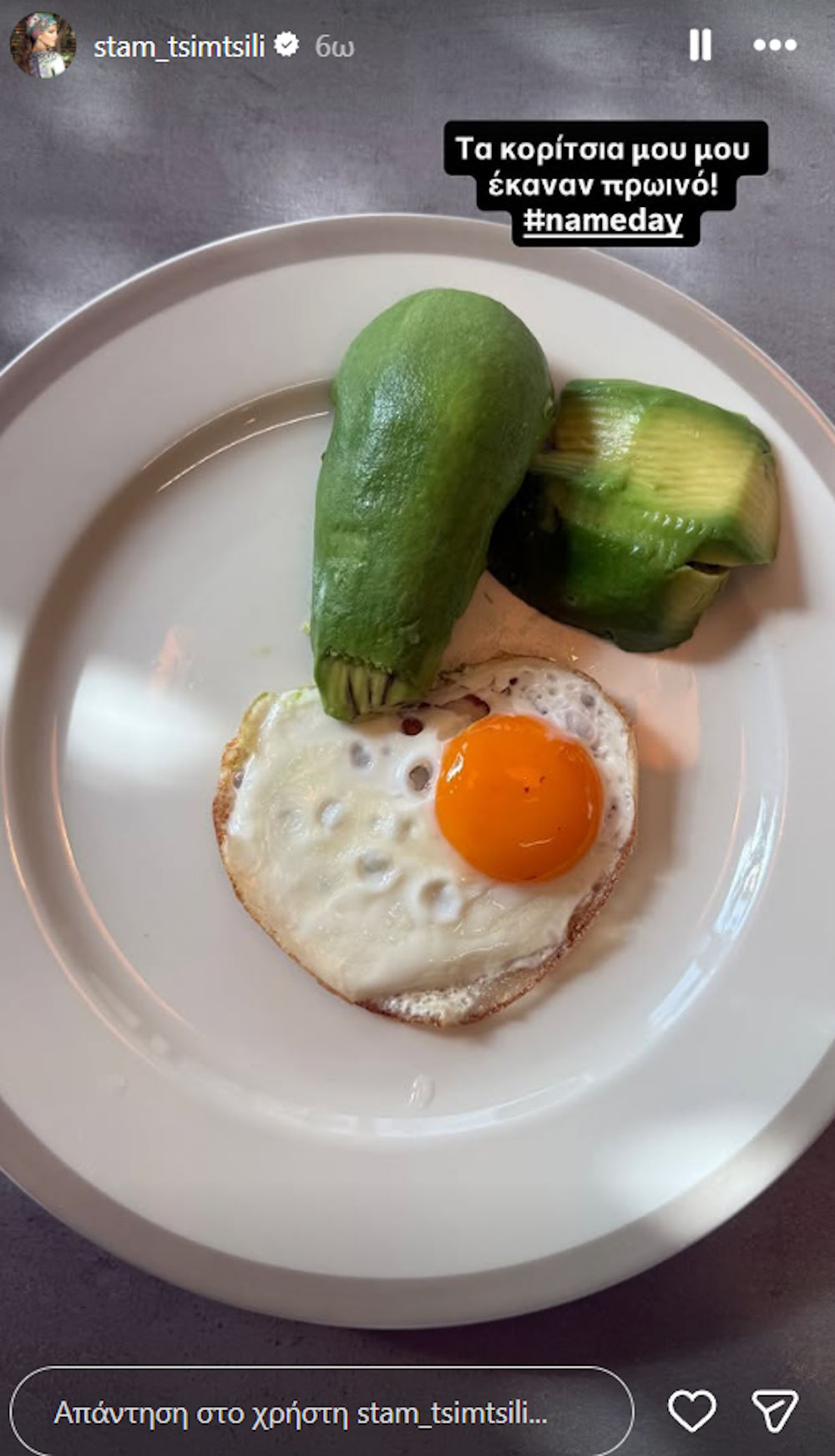 Η Σταματίνα Τσιμτσιλή απήλαυσε αυγά και αβοκάντο, το πρωινό που της έφτιαξαν τα παιδιά της για να της ευχηθούν με τον δικό τους, μοναδικό τρόπο για την ονομαστική της γιορτή.