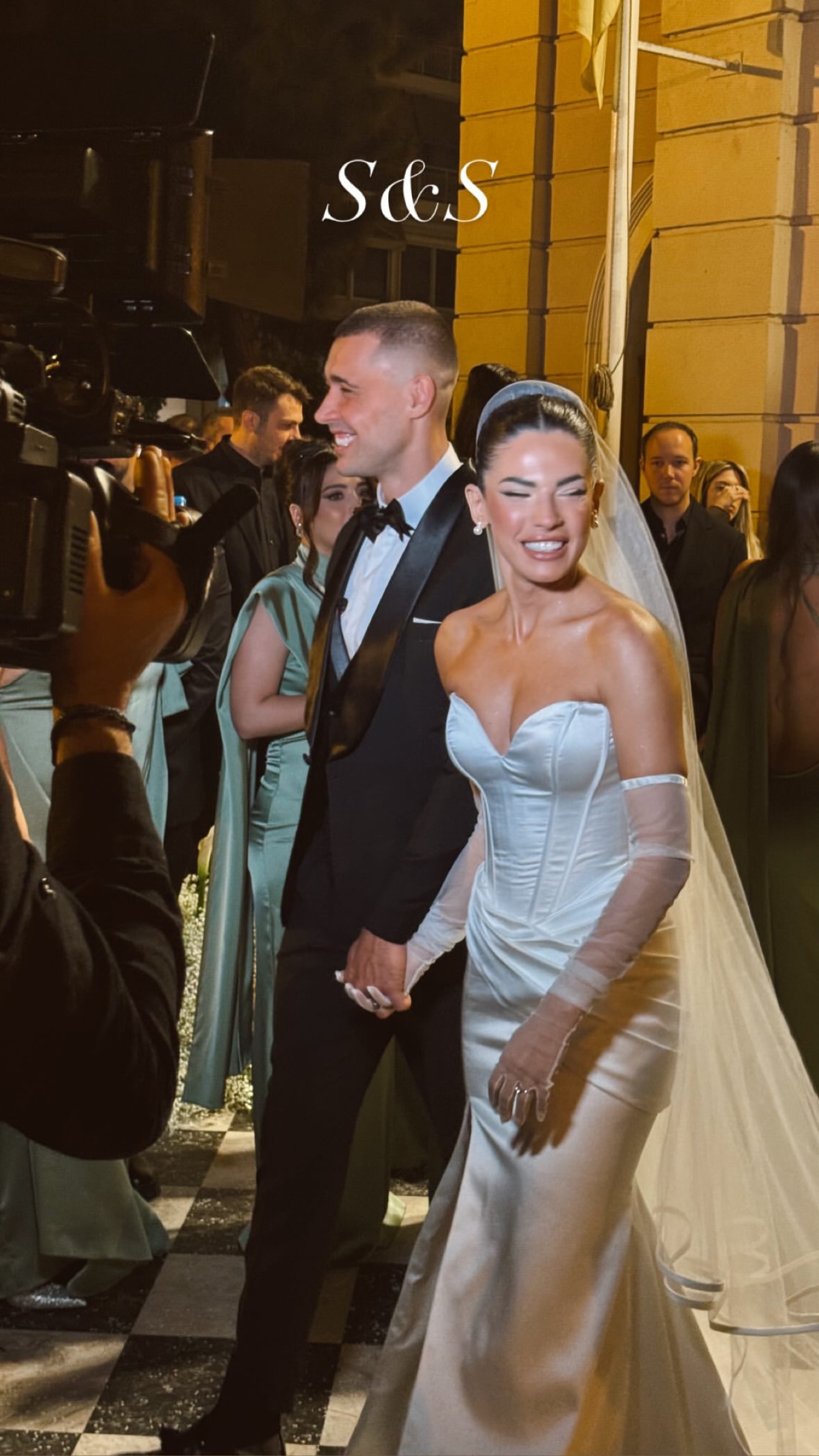 Μετά το «Ησαΐα χόρευε», το ζευγάρι έκανε την έξοδό του από την εκκλησία μέσα σε χαμό από φίλους και κάμερες. Στα stories που ανέβασαν καλεσμένοι και κουμπάροι φαίνεται καθαρά η στιγμή που δίνουν το πρώτου τους φιλί ως παντρεμένο ζευγάρι.