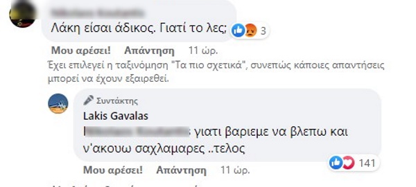 Λίγο μετά το ξέσπασμα της Κάτιας, ότι στον περσινό κύκλο του reality την είχαν παρουσιάσει ως «κλέφτρα» και τις έντονες αντιδράσεις της, ο Λάκης Γαβαλάς έκανε τη σκληρή κριτική του. Συγκεκριμένα, ο Λάκης Γαβαλάς «καρφώνει» την Κάτια Ταραμπάνκο και αναφέρει: «Δεν έχω πιο γελοία από την Ταραμπάνκο».