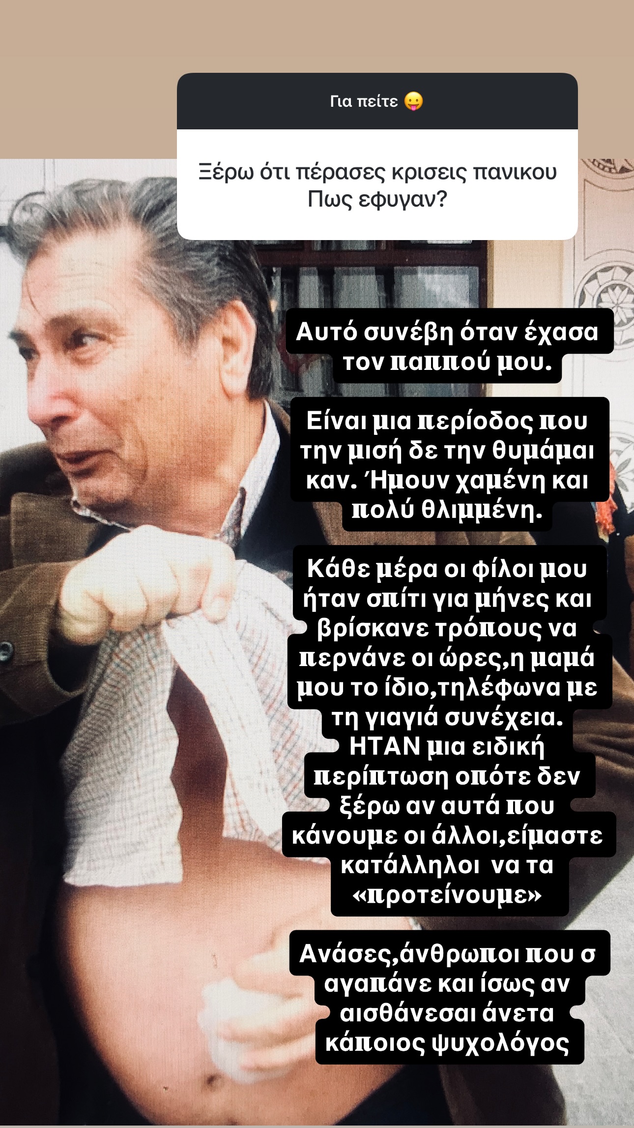 Μία από αυτές λοιπόν ήταν η εξής: «Ξέρω ότι πέρασες κρίσεις πανικού. Πως έφυγαν;»