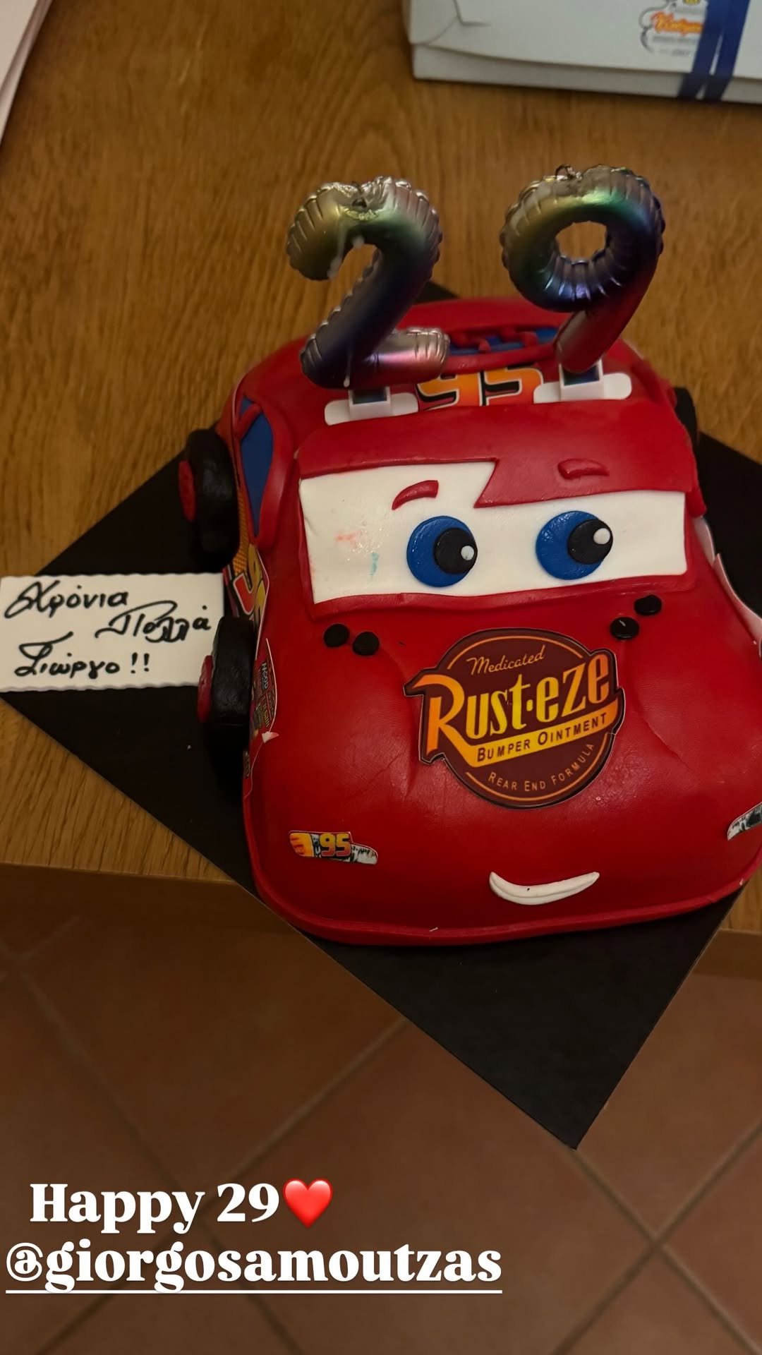 Η νεαρή τραγουδίστρια φρόντισε κάθε λεπτομέρεια, οργανώνοντας μια έκπληξη στο σπίτι, με λίγους και αγαπημένους φίλους να περιμένουν τον εορτάζοντα να γυρίσει και να τους βρει σπίτι του, η πιο γλυκιά έκπληξη ως κλείσιμο ημέρας. Όταν εκείνος μπήκε στον χώρο, τον υποδέχτηκαν με χαμόγελα, ευχές και μια ατμόσφαιρα γεμάτη αγάπη και οικειότητα. Το highlight της βραδιάς δεν ήταν άλλο από την τούρτα: ένα εντυπωσιακό κόκκινο αυτοκινητάκι, με playful διάθεση και έντονο προσωπικό χαρακτήρα, που έκλεψε αμέσως τις εντυπώσεις.