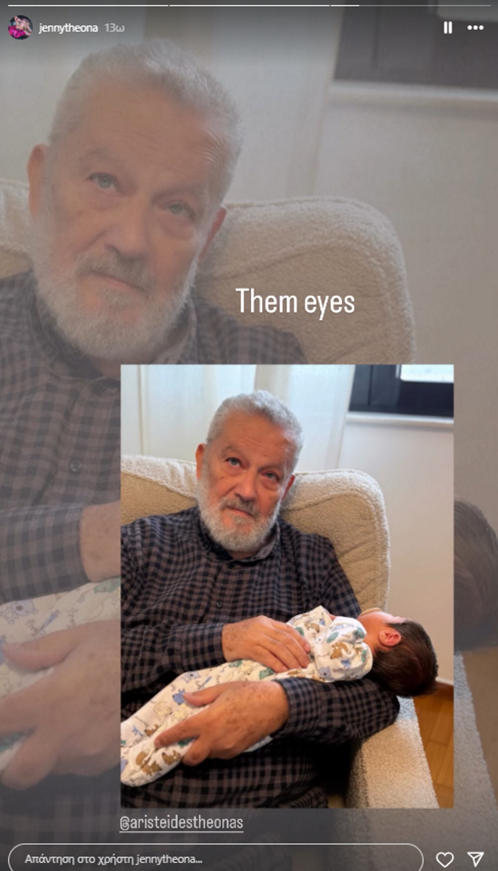 Λίγες ημέρες μετά, η Τζένη Θεωνά μοιράζεται ακόμα μια ευτυχισμένη στιγμή απαθανατίζοντας τον πατέρα της, Αριστείδη Θεωνά με τον γιο εγγονό του.