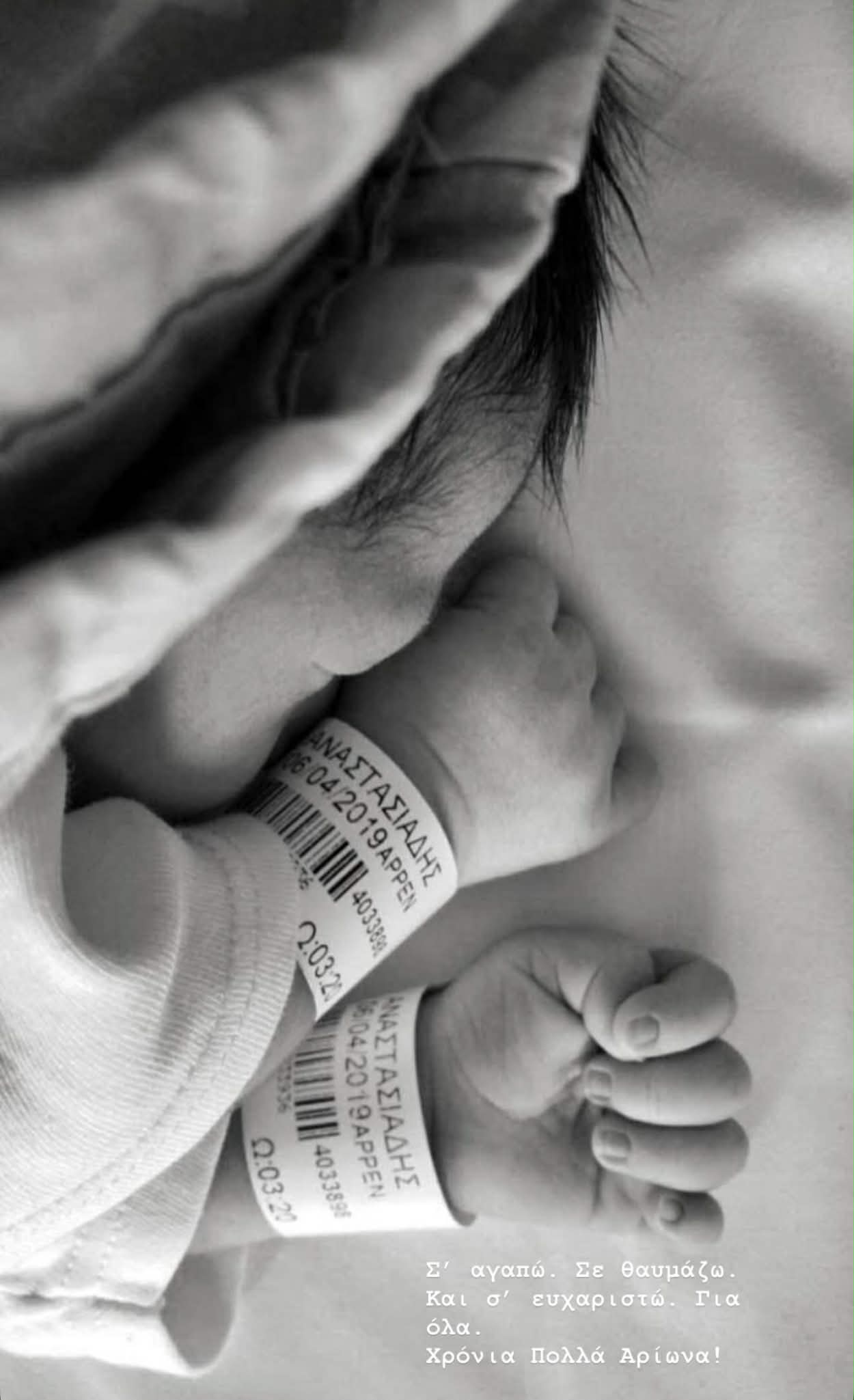 Με μια τρυφερή εικόνα, από το μαιευτήριο, μοιράστηκε ένα συγκινητικό μήνυμα, στους διαδικτυακούς της φίλους στο Instagram. Χαρακτηριστικά, έγραψε τα εξής: «Σ’αγαπώ. Σε θαυμάζω. Και σ’ευχαριστώ. Για όλα. Χρόνια Πολλά Αρίωνα».