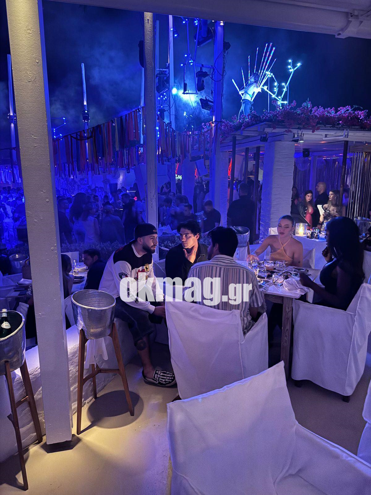 Ο φωτογραφικός φακός του okmag απαθανάτισε τον τραγουδιστή να κάθεται μαζί με τον Lil Koni, γιο του επιχειρηματία Χρύσανθου Πανά, ενώ στην παρέα τους βρέθηκε και ο dj Deleasa.