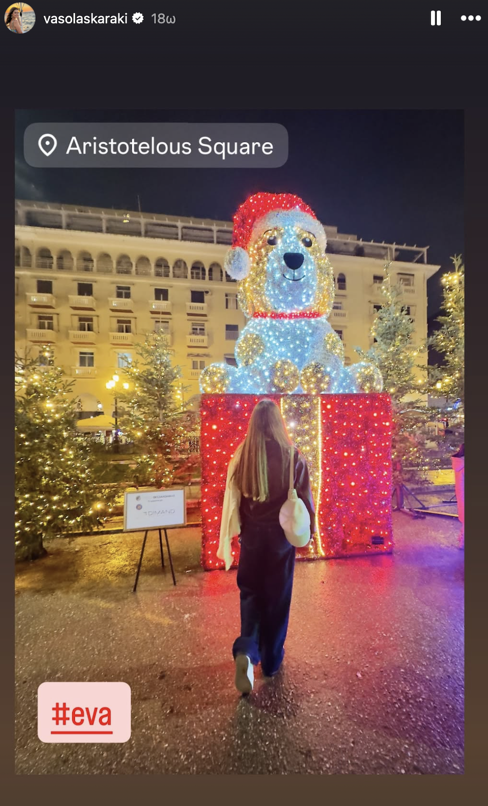 Ωστόσο, εκτός από τα ποστ όπου φωτογραφίζεται η ίδια, κατά τη διάρκεια του road trip, αναρτά φωτογραφίες και της κόρης της Εύας, όπως είναι αυτή στην Πλατεία Αριστοτέλους, στη Θεσσαλονίκη.