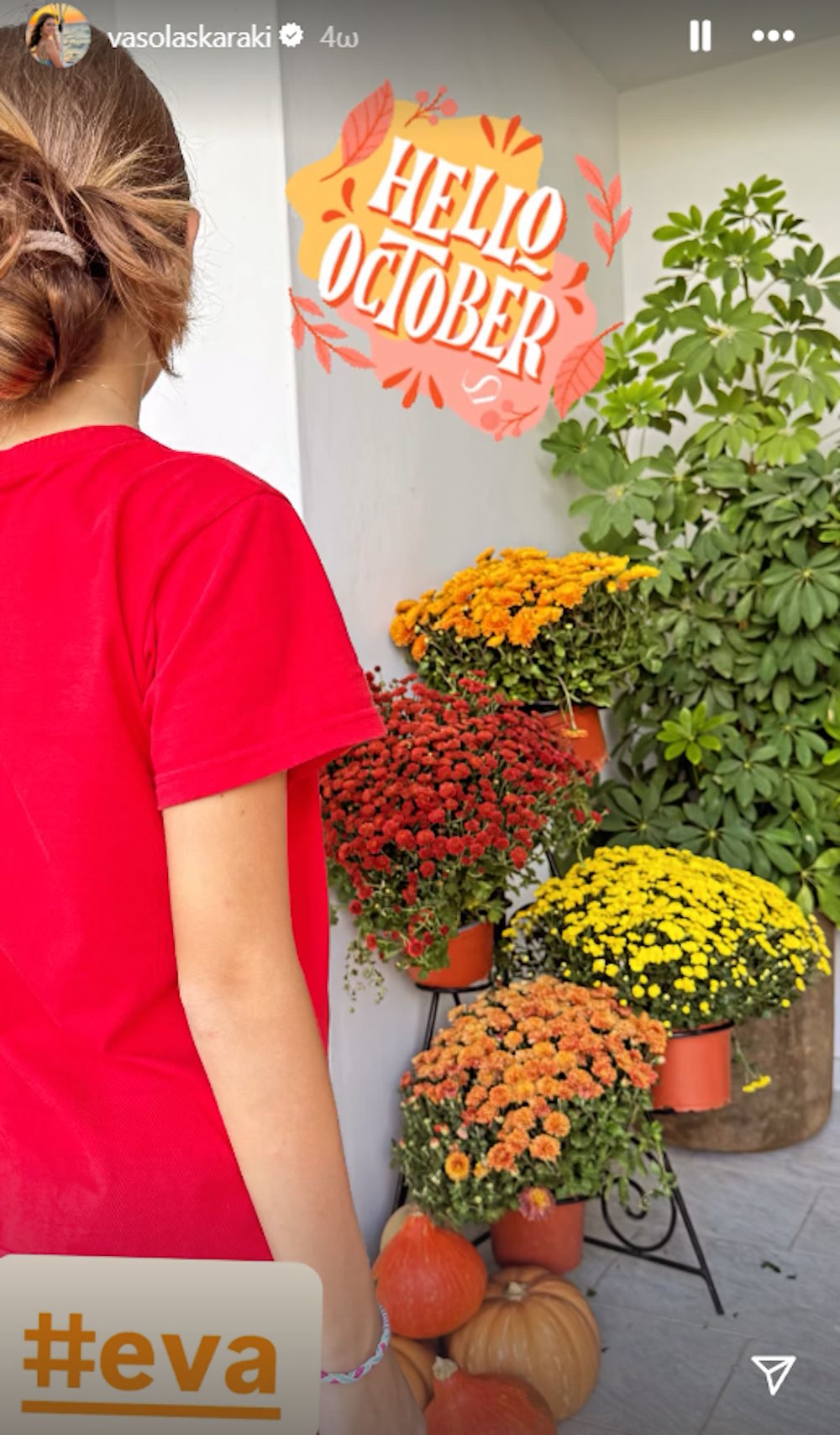 Ανάμεσα σε εκείνους που καλωσόρισαν τον νέο μήνα ήταν και η Βάσω Λασκαράκη με την κόρη της Εύα. Συγκεκριμένα, η ηθοποιός μαζί με την κόρη της, καθόντουσαν έξω από την πόρτα του σπιτιού τους καθώς εκεί είχαν διακοσμήσει τον χώρο με φθινοπωρινά λουλούδια.