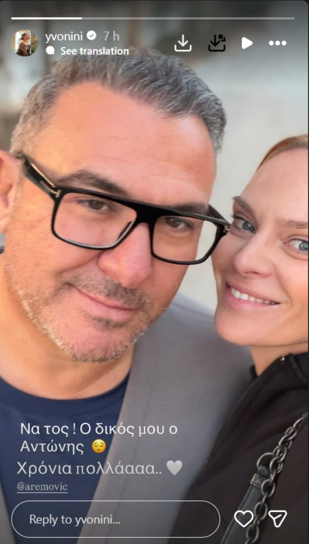 Η σχεδιάστρια μόδας επέλεξε να μοιραστεί μια κοινή τους φωτογραφία και να συνοδεύσει το στιγμιότυπο με ένα σύντομο, προσωπικό μήνυμα: «Να’ τος. Ο δικός μου ο Αντώνης. Χρόνια Πολλά».