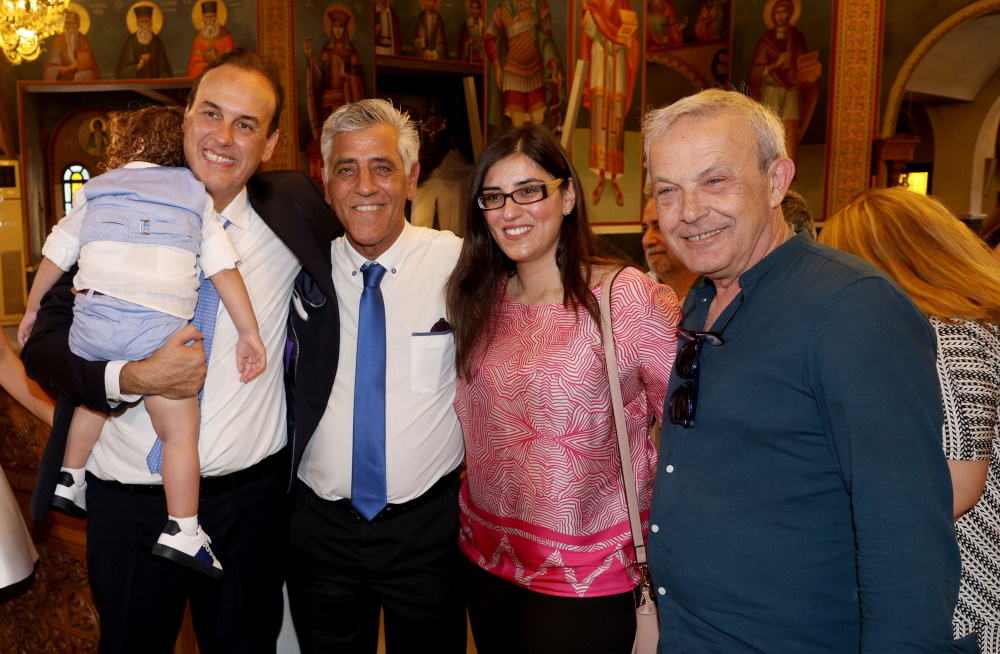 Το τέταρτο παιδί τους βάφτισαν την Κυριακή 28/7 ο δήμαρχος Γλυφάδας Γιώργος Παπανικολάου και η σύζυγός του Εύα. Το ζευγάρι που έχει αποκτήσει μαζί δυο γιους και δυο κόρες, έλαμπε από ευτυχία. Καλεσμένοι στη βάφτιση του Βενιαμίν της οικογένειας, άνθρβποι από τον πολιτικό και τον καλλιτεχνικό χώρο.