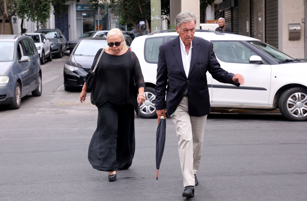 Η Μπέσσυ Αργυράκη ήταν από τους πρώτους που έφθασαν στην εκκλησία μαζί με τον σύζυγό της και ήταν εμφανώς συγκινημένη.