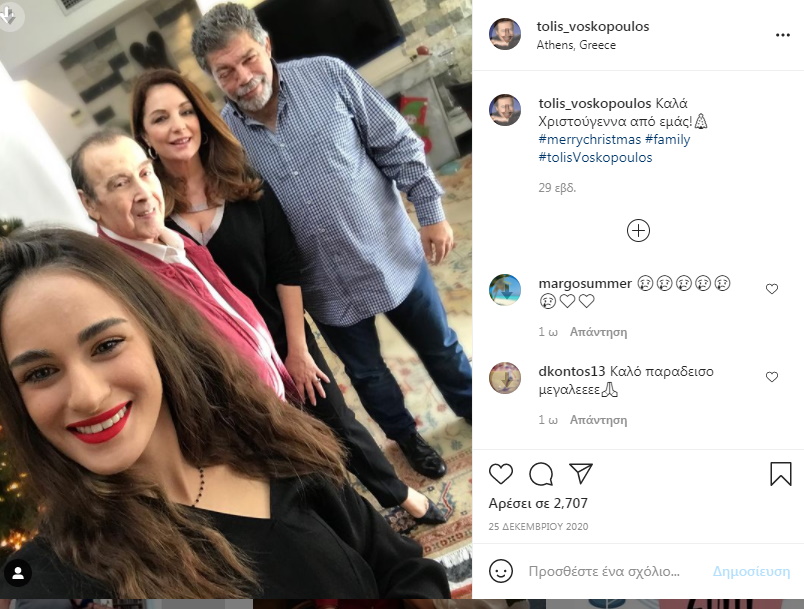 Πρωταγωνίστριες στις ελάχιστες αναρτήσεις του Τόλη Βοσκόπουλου στο Instagram, όπως και στη ζωή του, ήταν η σύζυγός του, Άντζελα Γκερέκου και η κόρη τους, Μαρία. Μαζί τους ήταν και η τελευταία φωτογραφία που ανέβασε, τον Δεκέμβριο του 2020, στέλνοντας ευχές για τα Χριστούγεννα. Ο πρίγκιπας του λαϊκού τραγουδιού πόζαρε χαμογελαστός ανάμεσα στις γυναίκες της ζωής του.