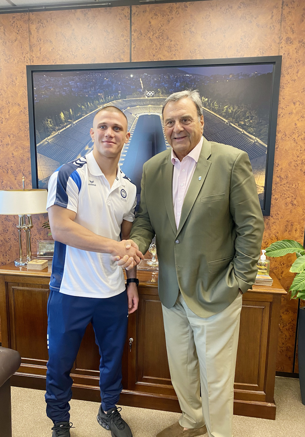 Από την μεριά του ο Γιάννης Βρούτσης συμπλήρωσε: «Είναι μεγάλη χαρά που υποδέχτηκα έναν Παγκόσμιο πρωταθλητή. Έναν αθλητή που σήκωσε την Ελληνική σημαία ψηλά, που πέτυχε, κάτι τόσο μεγάλο, όπως το χρυσό μετάλλιο, που έλειπε από την Ελλάδα! Το υπουργείο θα είναι δίπλα στον αθλητή, στον προπονητή του και την Ομοσπονδία της Πάλης. Θα τους στηρίξουμε με όλες μας τις δυνάμεις. Θα είμαστε στο πλευρό του έμπρακτα. Η Πάλη είναι ένα άθλημα ιστορικό και ο Γιώργος θα γίνει το πρότυπο για να έρθουν νέα παιδιά στο άθλημα».