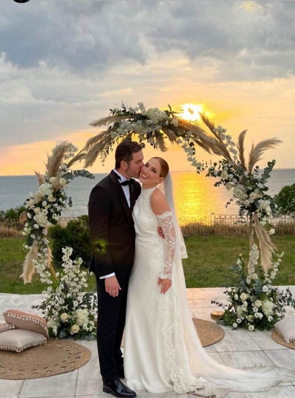 Η νύφη δημοσίευσε αρκετά στιγμιότυπα από τον γάμο της όπου ανάμεσα στους καλεσμένους βρισκόταν και η ηθοποιός Πένυ Αγοραστού. Η νύφη επέλεξε ένα maxi νυφικό με ρομαντική δαντέλα που έδενε στον λαιμό, ενώ φορούσε πέπλο και γάντια.