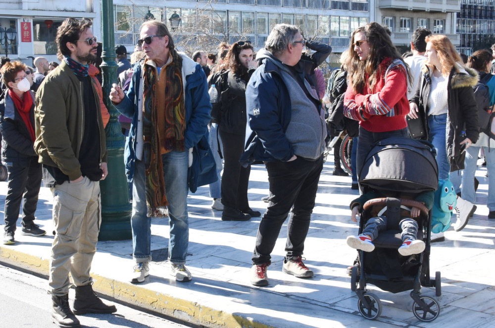 Ο Ορφέας Αυγουστίδης και μαζί με τη σύζυγό του Γεωργία Κρασσά και τον γιό τους συμμετείχαν στη μαζική συγκέντρωση διαμαρτυρίας των καλλιτεχνών στο Σύνταγμα.