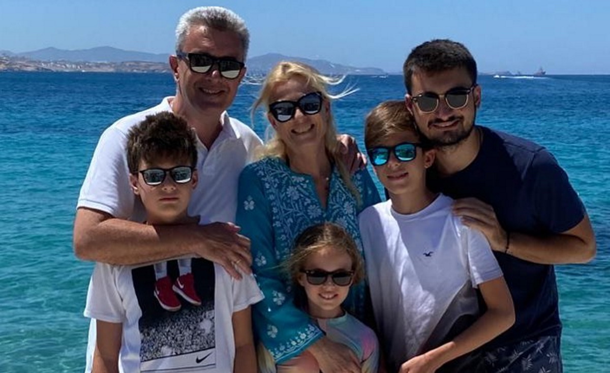 Ο επιχειρηματίας και anchorman του κεντρικού δελτίου ειδήσεων του ΑΝΤ1, βρέθηκε με τη σύζυγό ου Κρίστη Τσολακάκη και τα τέσσερα παιδιά τους στο κυκλαδίτικο νησί. Μαζί τους ήταν και η μητέρα της Κρίστη Τσολακάκη, Μαργαρίτα Μπρόγιερ. Η οικογένεια μάλιστα απόλαυσε το γεύμα της στο cafe bar restaurant Vintsi στο Κόρθι.