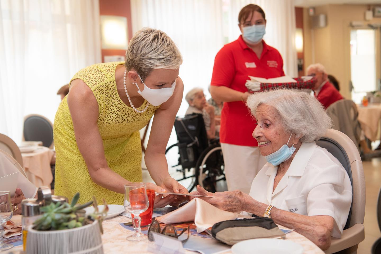 Η Σαρλίν του Μονακό βρήκε χρόνο για να χαιρετήσει το εποπτικό προσωπικό και τους συνταξιούχους που την περίμεναν στην αίθουσα υποδοχής. Σε όλους δόθηκε, αυτοπροσώπως, μια ωραία φωτογραφία της πριγκιπικής οικογένειας.