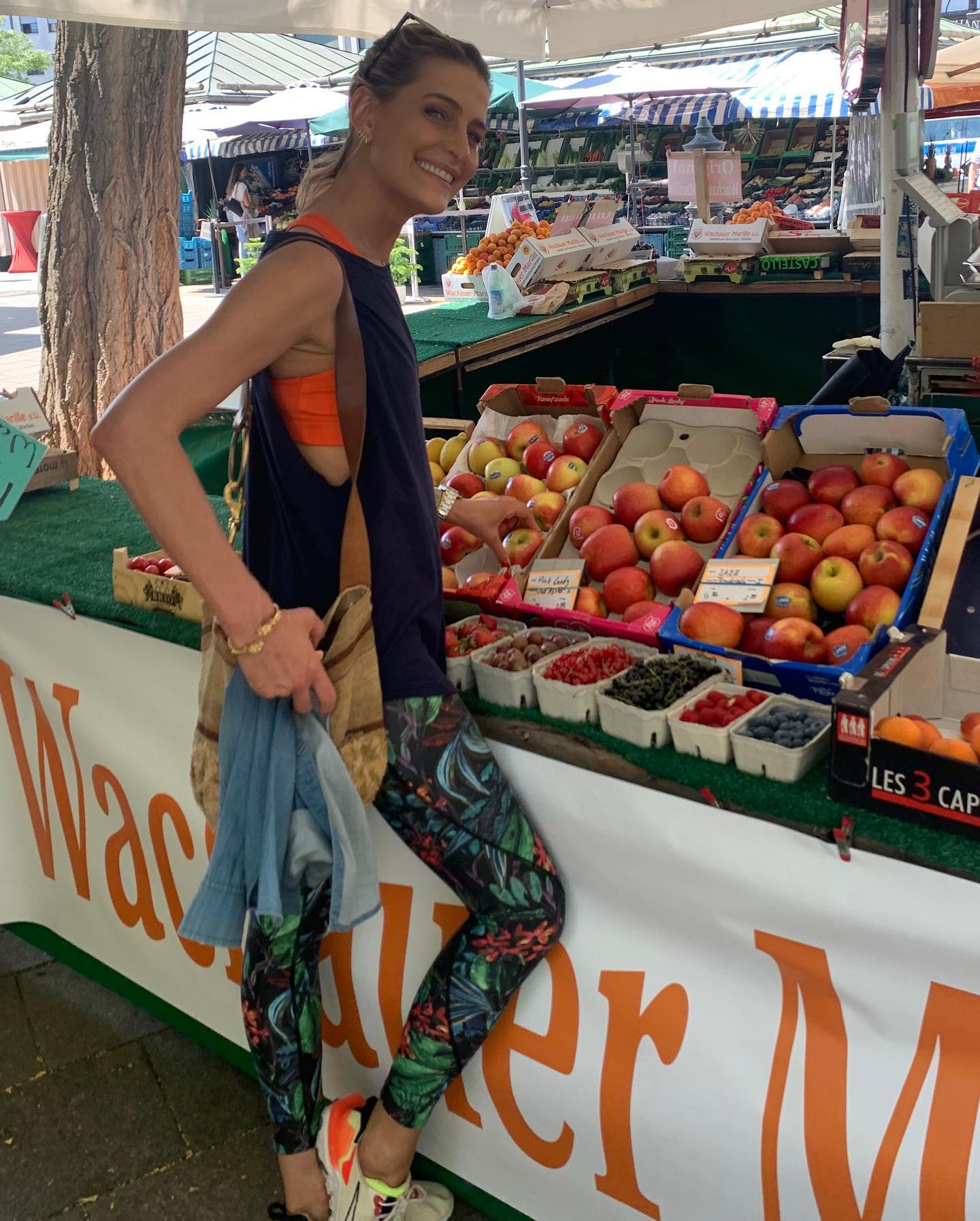 Η ίδια ολοκλήρωσε το look με chunky sneakers, ενώ φωτογραφληθηκε στη λαϊκή αγορά της πόλης να διαλέγει φρούτα.