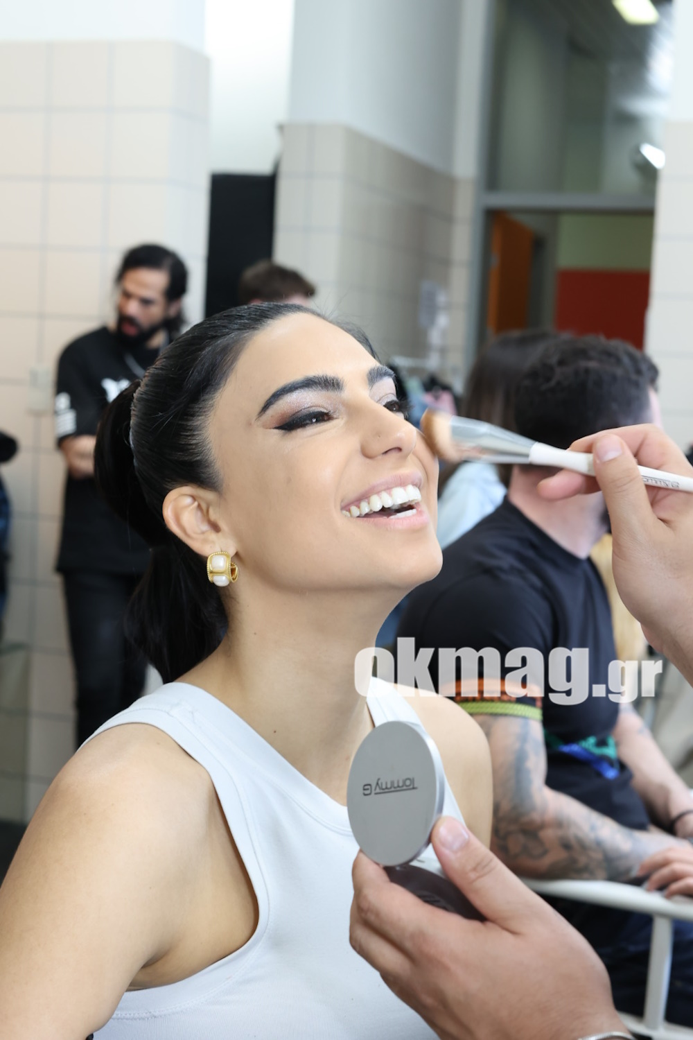 Τελευταίες λεπτομέρειες στο μακιγιάζ της Φαίης Ρουμπίνη.